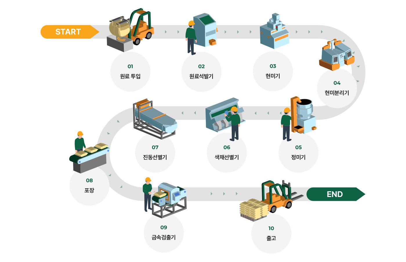 색채미, 착색립, 피해립, 기타이물 등 선별